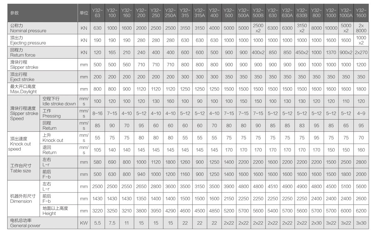 ◆ 本系列液壓機(jī)具有繼電器控制和PLC控制兩種電器控制系統(tǒng),有調(diào)整、手動(dòng)及半自動(dòng)三種操作方式,可實(shí)現(xiàn)定壓和定程兩種工藝方式。定壓成型時(shí),在壓制后有保壓延時(shí)及自動(dòng)回程動(dòng)作。工作臺(tái)中間裝有頂出裝置,除頂出制品外,尚可作為液壓用于反拉伸制件的成型工藝,其工作壓力與行程,可根據(jù)工藝需要,在規(guī)定范圍內(nèi)調(diào)整。